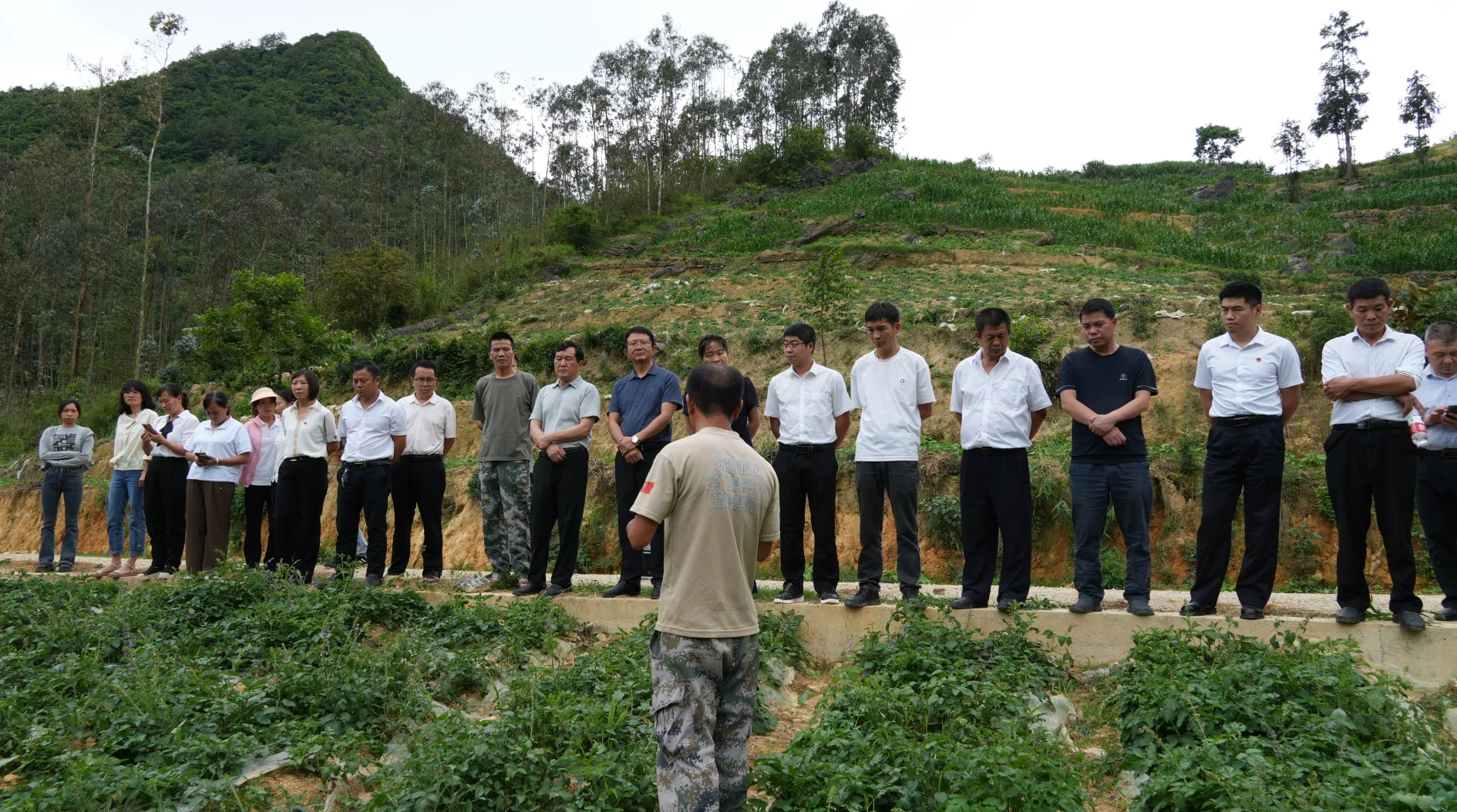 代表们先到西畴县鸡街乡海子村委会兔龙村小组丹参种植基地调研,实地了解2000亩丹参种植基地发展情况。“目前丹参销路如何?”“多少一吨?”代表们边看边仔细询问。在海子村委会下鲤鱼木姜子、花椒产业种植基地,代表们与企业共商西畴生物多样保护与利用,就如何发展推动经济等方面展开了实地考察和深入细致地讨论。