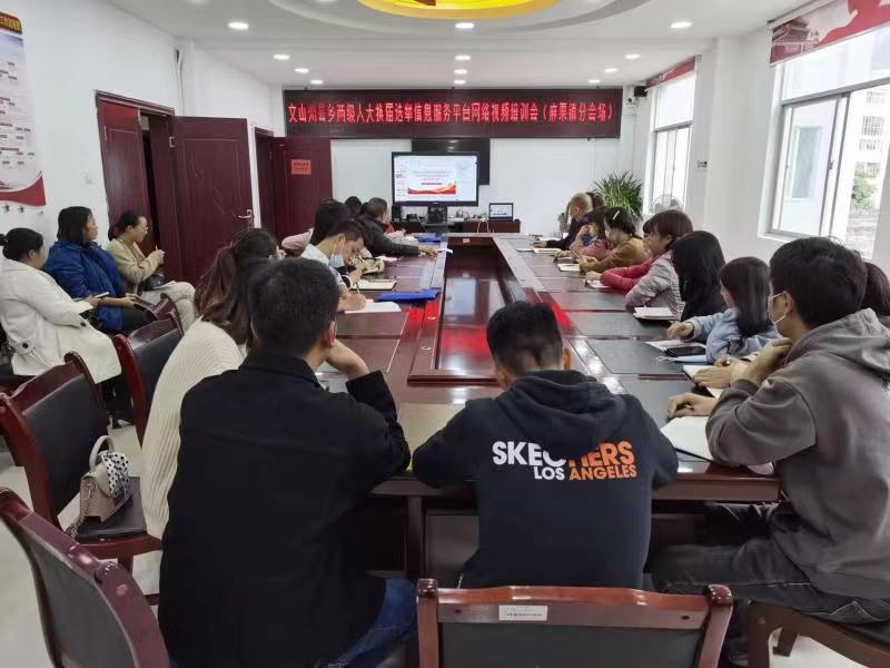 此次培训是在7月8日对全州换届选举服务平台操作业务骨干进行培训的基础上,由省人大常委会确定的昆明众选科技公司对云南省县乡两级人大换届选举信息服务平台业务的操作使用进行再次培训,并在线解答操作使用中遇到的问题。培训前,州人大常委会和各县(市)人大常委会做了充分准备,与昆明众选科技公司技术骨干反复研究协商培训方案,建立相应的培训微信群或QQ群,安排专人收集整理在推广使用县乡两级人大换届选举信息服务平台工作中的共性问题,组织学习县乡两级人大换届选举业务和操作系统的相关培训材料,由县(市)督促指导参训人员提前下载安装“腾讯会议客户端”,在乡(镇)所在地集中设置分会场,让参训人员带着问题学、带着思考学、带着任务学,确保学有所获。
