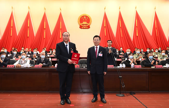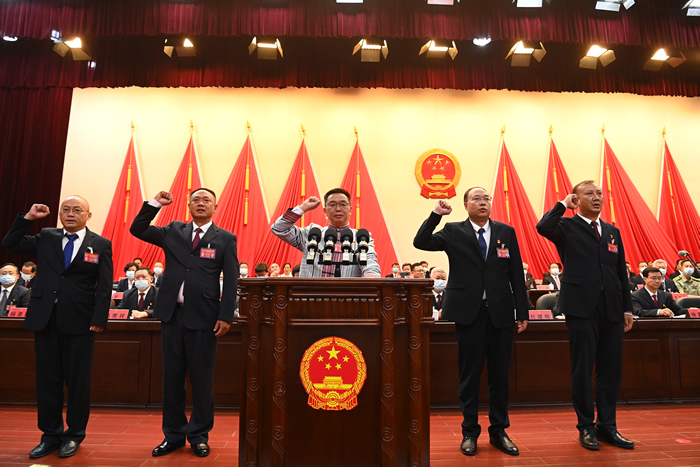会上,大会主席团常务主席、州委书记陈明分别向马忠俊、巫运康、毕波、陈宏、钱虎颁发了当选证书。新当选的5位同志向宪法宣誓。