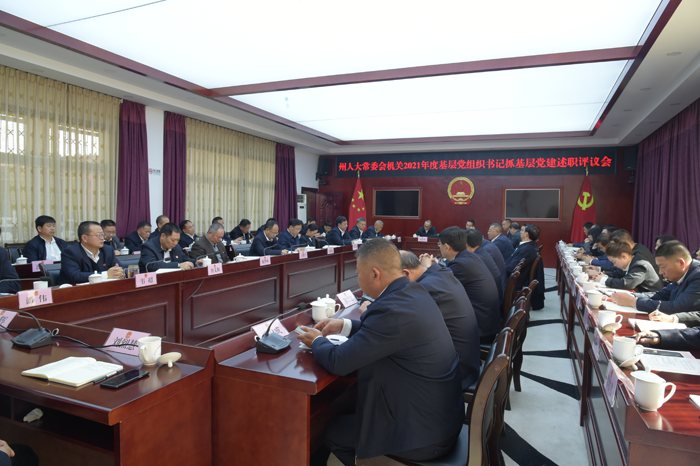 1月10日,州人大常委会机关召开2021年度基层党建述职评议考核会,机关在职全体党员和离退休党员代表共54人参加会议。