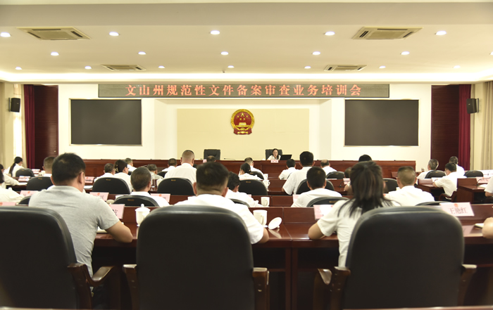 州人大常委会副主任刘扬作主持会议,云南省人大常委会法工委规范性文件备案审查处处长杨燕应邀作专题讲授。州人民政府办公室、州监委、州法院、州检察院、州司法局和各县(市)人大常委会等近50人参加培训。