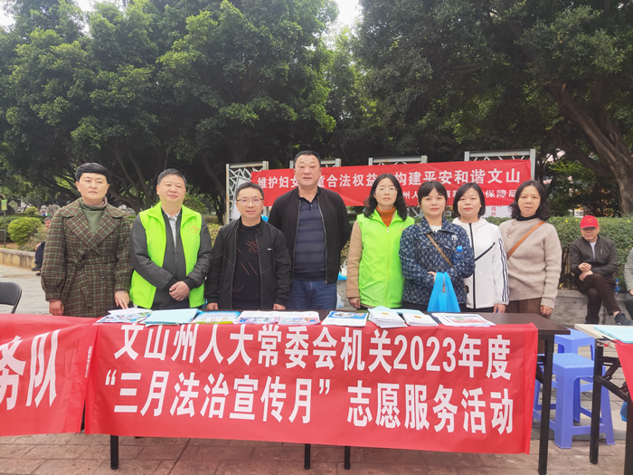一是开展“三八维权月”活动,普法宣传深入人心。先后组织巾帼志愿者走进文山市卧龙街道龙海社区和到休闲广场设立宣传咨询点,向过往群众发放《家庭教育促进法》《民法典》《妇女权益保障法》《反家庭暴力法》《义务教育法》《文山壮族苗族自治州河道管理条例》《文山壮族苗族自治州文明行为促进条例》等法律法规宣传资料,接受群众法律咨询,共发放资料1500份,接受咨询30余人次,有效增强了社区居民和群众的法律意识,大力引导妇女尊法学法守法用法。