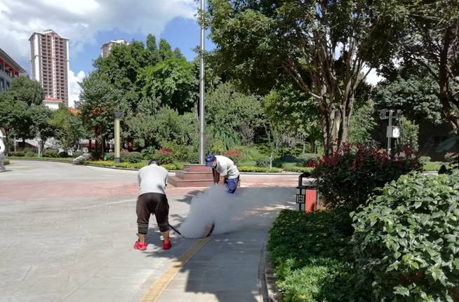 2018年9月21日,组织机关干部职工开展办公室内外卫生大扫除后,再次联系云南省培港病媒生物放制有限公司施工人员到机关办公区,对下水道、垃圾箱、绿化带、餐厅厨房内的橱柜、储物间、办公室等进行药物消杀。