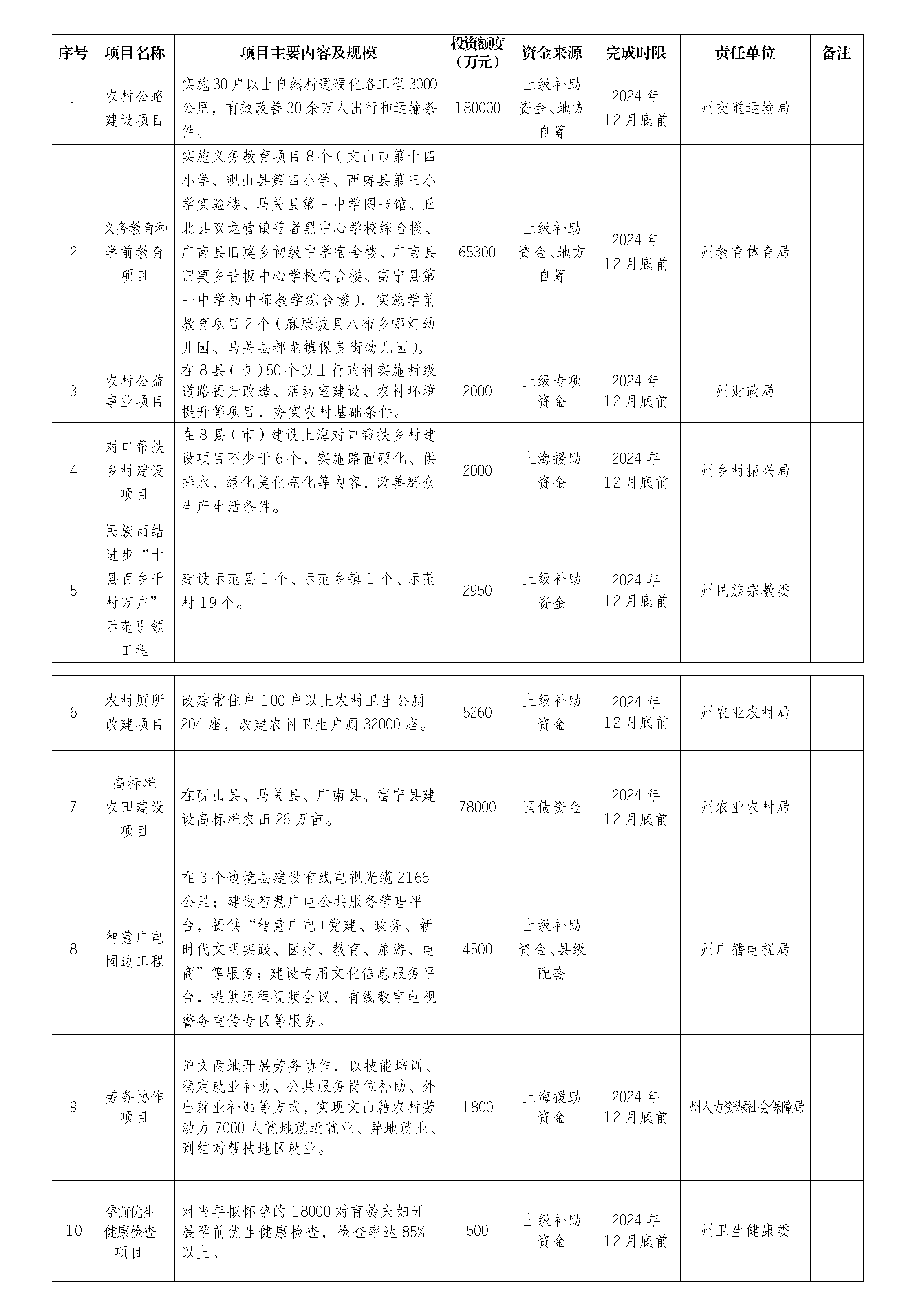 根据《文山州人大常委会重大民生实事项目人大代表票决制实施办法》和《文山壮族苗族自治州2024年度重大民生实事项目人大代表票决办法》,文山壮族苗族自治州第十五届人民代表大会第四次会议,票决出文山州2024年度10件重大民生实事项目,现予以公告。