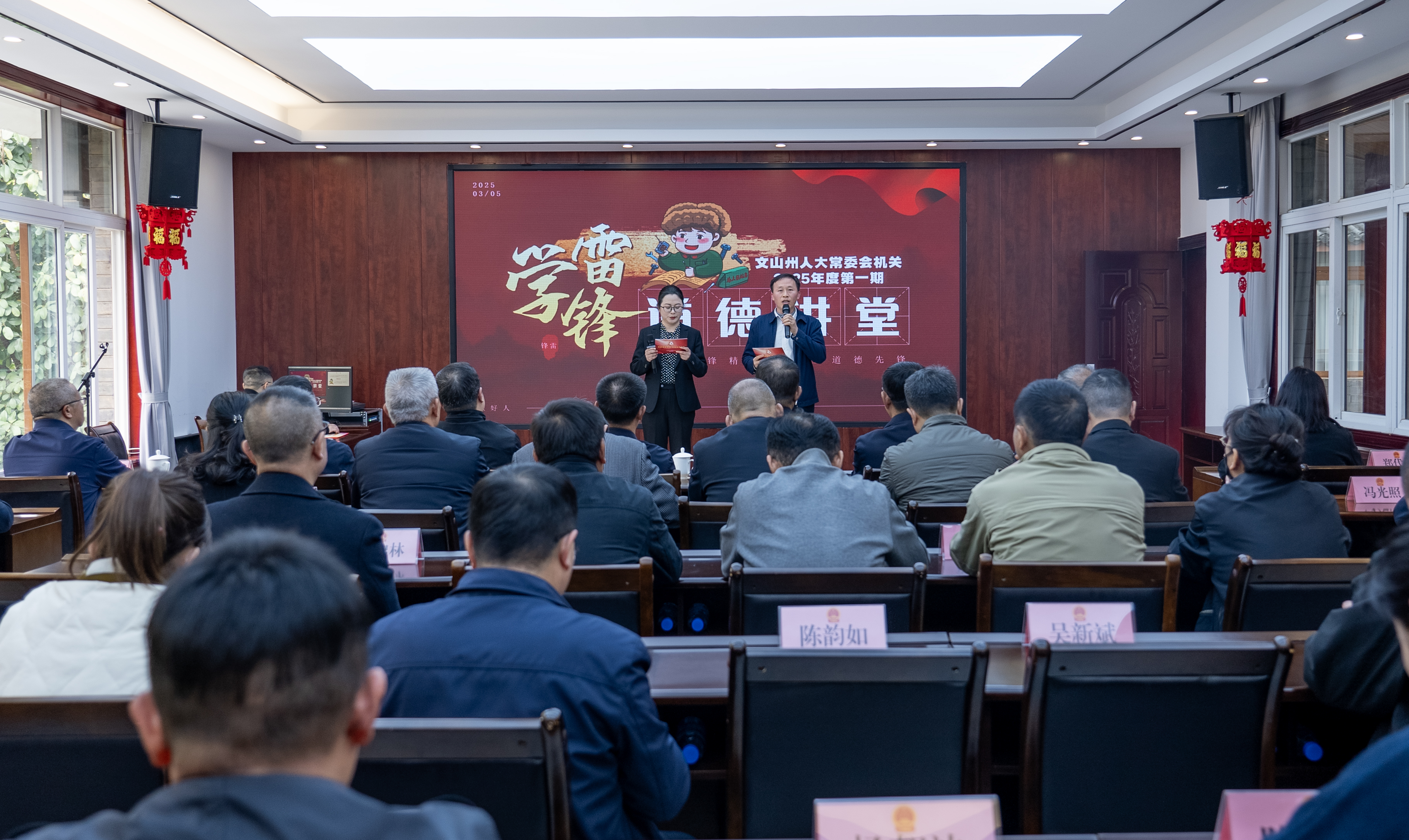 为切实加强机关精神文明建设,不断巩固提升州人大常委会机关全国文明单位示范创建水平。3月7日,文山州人大常委会机关结合第62个学雷锋纪念日暨新时代文明宣传实践周活动,举办2025年度第一期道德讲堂。以“传承雷锋精神、争当道德先锋”为主题,大力弘扬中华传统美德,培育时代新风新貌,进一步提升州人大常委会机关干部队伍的整体素质。