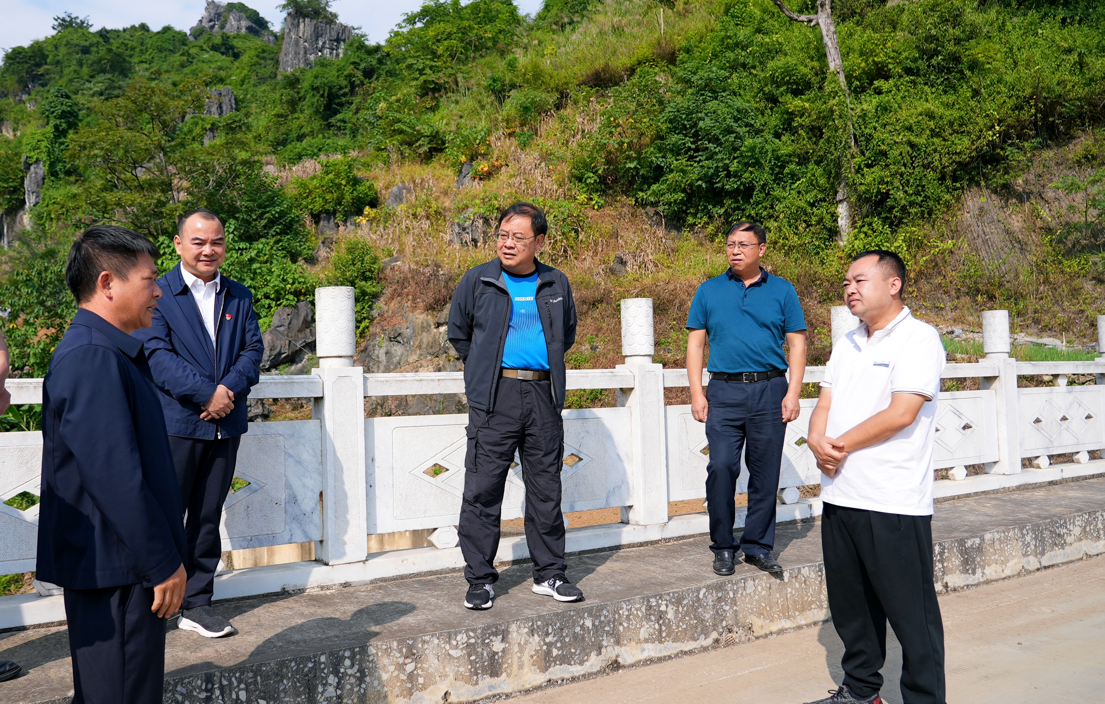 王毅一行来到麻栗坡县八布河江东桥段,现场查看河流治理保护情况,听取“河长制”落实情况汇报,并针对河流水污染防治等问题与当地干部一起研究治理办法和措施。