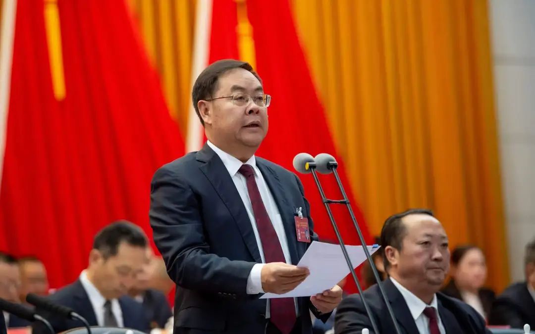 大会主席团常务主席、第四次全体会议执行主席陈明讲话,大会主席团常务主席、第四次全体会议执行主席王毅主持。