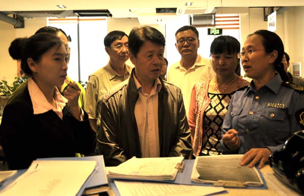 调研组冒雨在文山市阳光农贸市场调研  调研组在爱伲牛肉餐饮店查看台帐  调研组在东山农产品质量安全监管站调研